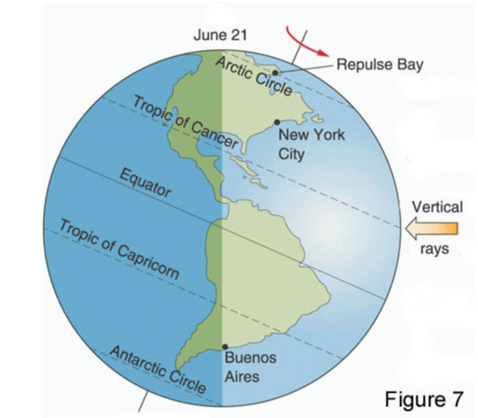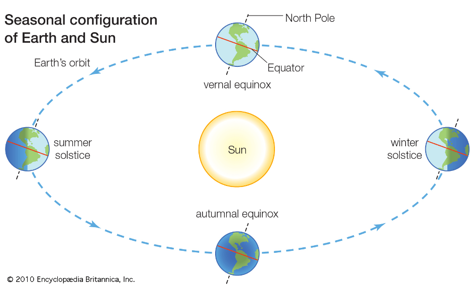 Inclinatia axei Pamantului de 23,5 grade si rotatia Pamantului pe orbita sa face ca alternativ, emisfera N si S sa fie inclinata spre Soare, de unde vor primi mai multa lumina si caldura. Cand axa Pamantului este inclinata spre Soare este vara in emisfera nordica si iarna in emisfera sudica. Pamantul isi continua rotatia pe orbita sa si cand axa Pamantului este indepartata de Soare este iarna in emisfera nordica si vara in emisfera sudica.