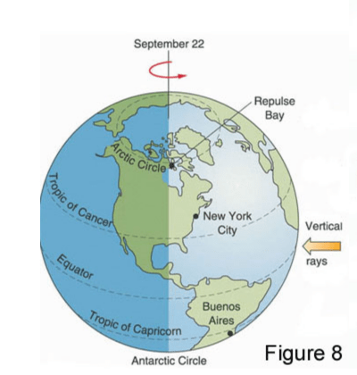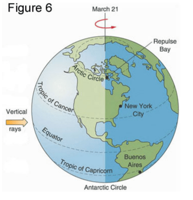Dar la miscarea sa pe orbita, Pamantul ajunge de 2 ori pe an intr-o pozitie in care razele soarelui cad vertical pe suprafata sa la Ecuator si incalzesc in mod egal cele 2 emisfere: cand Soarele in miscarea sa aparenta pe ecliptica trece de la emisfera sudica la cea nordica si invers, adica la 21 Martie si 22 Septembrie. Acestea sunt momentele de echinoctiu de primavara numit punctul Vernal ce corespunde cu 0 grade Berbec, si echinoctiul de toamna numit Punctul Autumnal ce corespunde cu 0 grade Balanta. In aceste doua momente, ziua este egala cu noaptea. Simultan, in emisfera sudica 21 Martie marcheaza inceputul toamnei si 21 septembrie inceputul primaverii.