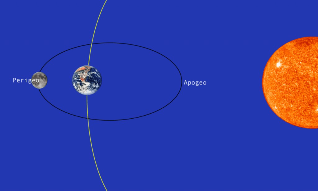 In miscarea sa pe orbita in jurul Pamantului in raport cu stelele fixe, Luna parcurge o rotatie completa in 27,3 zile. Datorita faptului ca orbita Lunii nu este perfect circulara, ci eliptica, Luna se va afla in fiecare luna calendaristica mai aproape sau mai departe de Terra, acest proces fiind numit perigeu, respectiv apogeu. Luna Plina are loc in fiecare luna calendaristica, dar exista numai doua zile pe an cand in acelasi timp orbita Lunii se afla in punctul cel mai apropiat de Terra, adica la perigeu.
