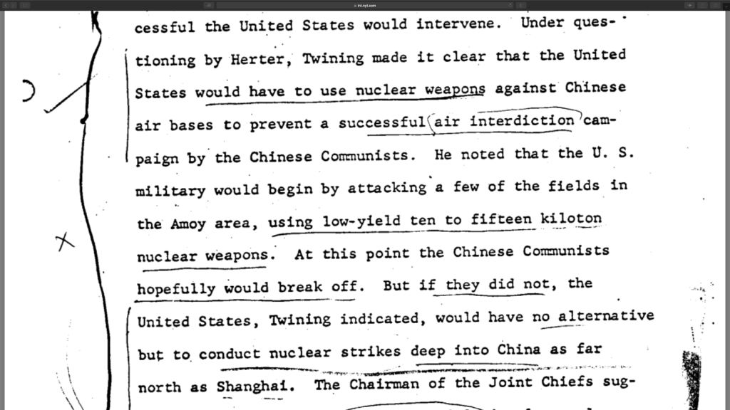 Fragmente din Memorandumul The 1958 Taiwan straits crisis: A documented history. Sursa: The New York Times