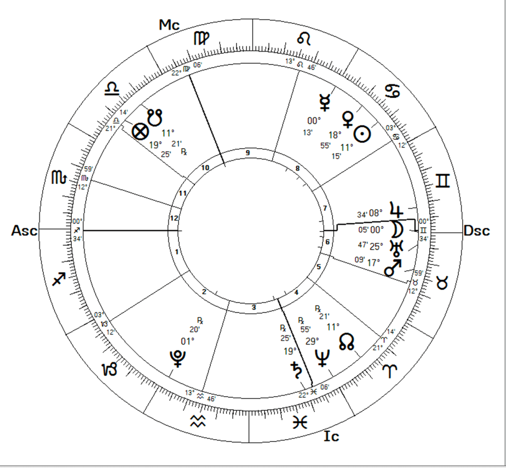 PS. România nu a făcut o surpriză frumoasă, ci una dezastruoasă. Harta nu este una orară, ci una de eveniment, ea fiind ridicată pentru ora de începere a meciului, 18.00, pentru locația Munchen. Metodă folosită este cea din cartea Sport Astrology, dar se pare că nu funcționează pentru meciurile de zi cu zi, ci numai pentru cele importante, cum sunt semifinalele și finalele.