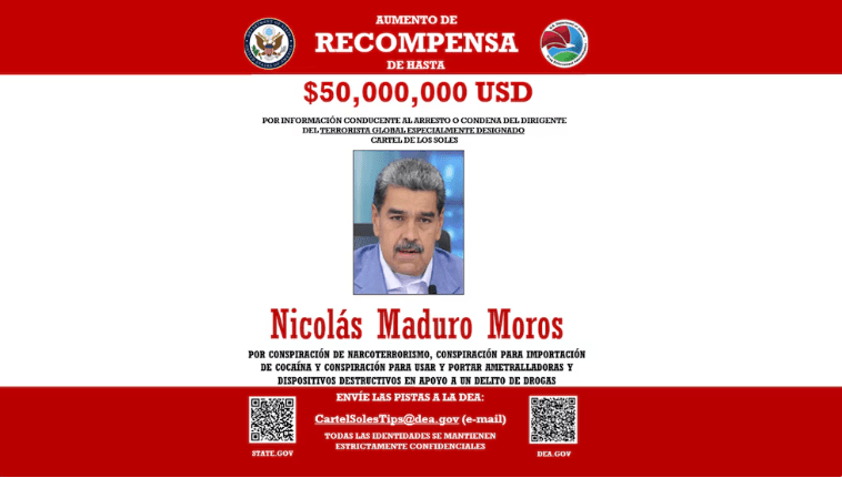 În luna iulie, presedintele SUA, Donald Trump a semnat o directivă, care este încă secretă, în care a instruit Pentagonul să folosească forța militară împotriva unor carteluri de droguri din America Latină pe care guvernul său a descris -o drept organizații „teroriste”. In același timp, guvernul a declarat că grupul criminal venezuelean (Los Soles), este o organizație teroristă, în timp ce descrie guvernul lui Maduro ca fiind nelegitim. De atunci, Pentagonul mobilizează unități ale Marinei Americane (4000 de pușcași marini), inclusiv nave de război și un submarin nuclear in sudul Mării Caraibelor. Mai mult, Donald Trump și-a reiterat acuzația față de Nicolás Maduro, de a fi liderul grupului criminal al Cartelului Los Soles și a ridicat recompensa la 50 de milioane de dolari pentru informații care duc la arestarea președintelui venezuelean.